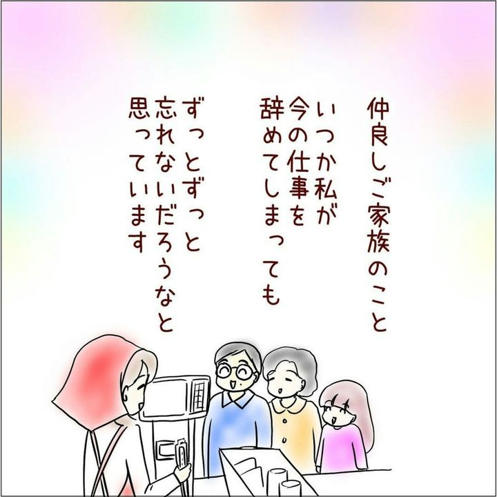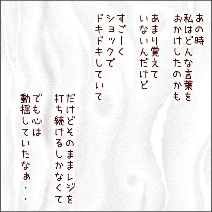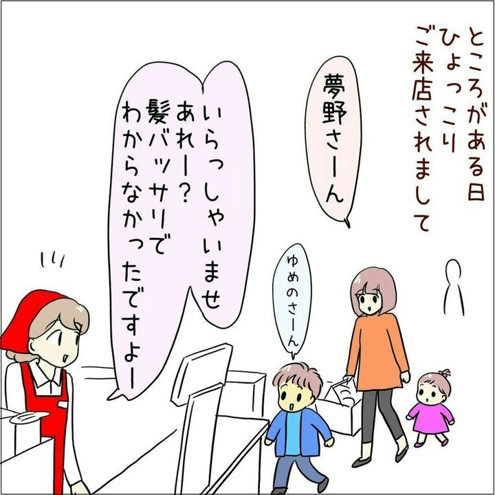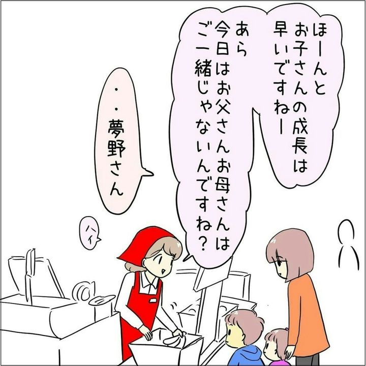 スーパーで働いている、あとみ(@yumekomanga)さん。いつも、あとみさんのレジに並ぶお客様が何組かいらっしゃいます。その中でも、より印象に残っているのが「仲良し家族」のお客様でした。月日は流れ、小学生だった「お嬢さん」に赤ちゃんが誕生。家族が増えたあとも、変わらず仲睦まじい様子で来店していた一家。ところがある日、ご主人が急激に痩せてしまったことに気づきます。聞くと、あまり容態がよくないそう。「お大事に」と声をかけたものの、しばらく見かけませんでした…。「スーパー」という日常生活で利用する場所で、従業員とお客様の交流が描かれています。人と人との不思議なつながりを感じる作品です。