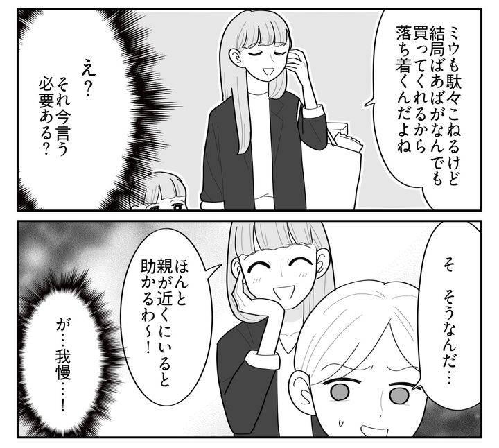 3. <無神経オンナにイラッ>娘の前でお土産を爆買い⇒「うちは親がいてよかった~」発言【まんが】