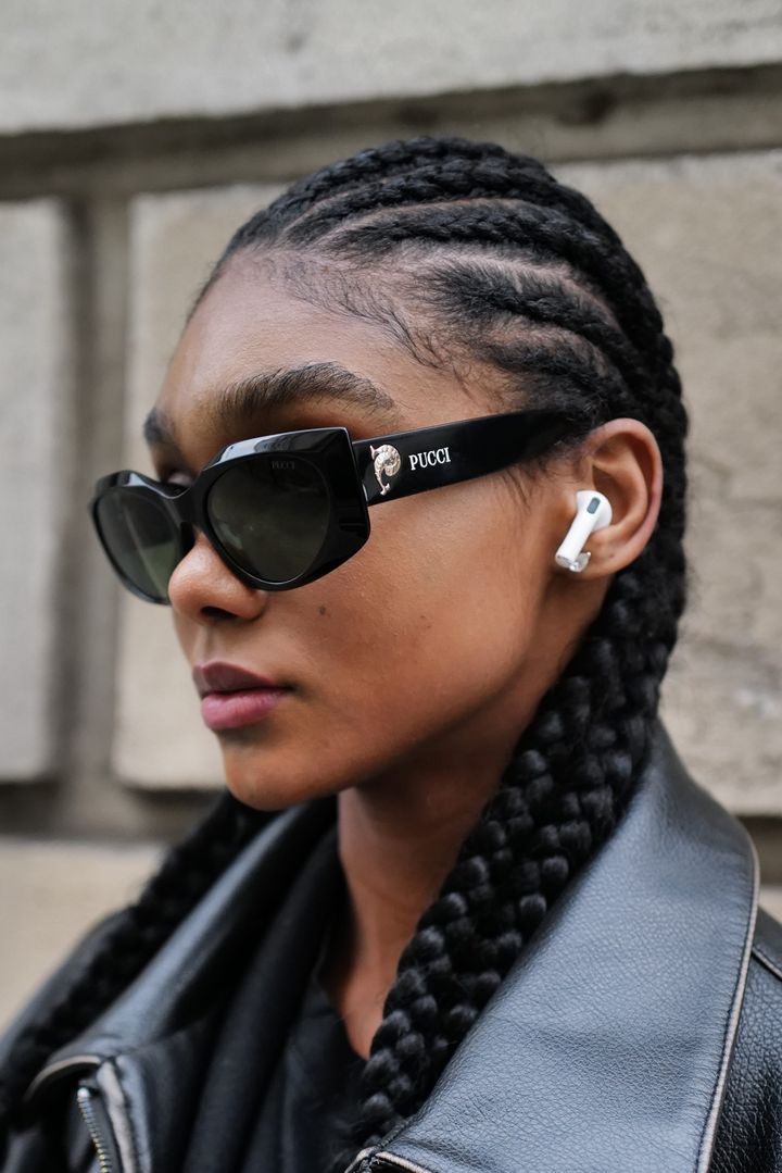 コーンロウがクールなナタリアの横顔に、「プッチ」のスタイリッシュなサングラスがベストマッチ。