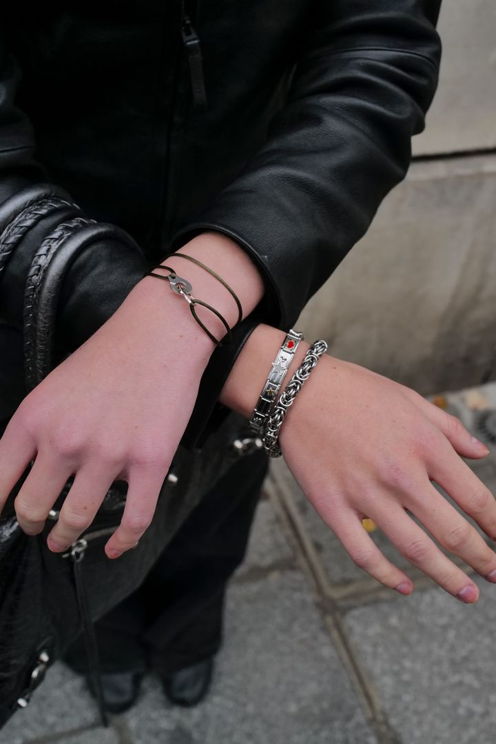 手元もシルバーでまとめてクールに徹して。パリブランド「ディンヴァン」のアイコニックなコードブレスもお気に入り。