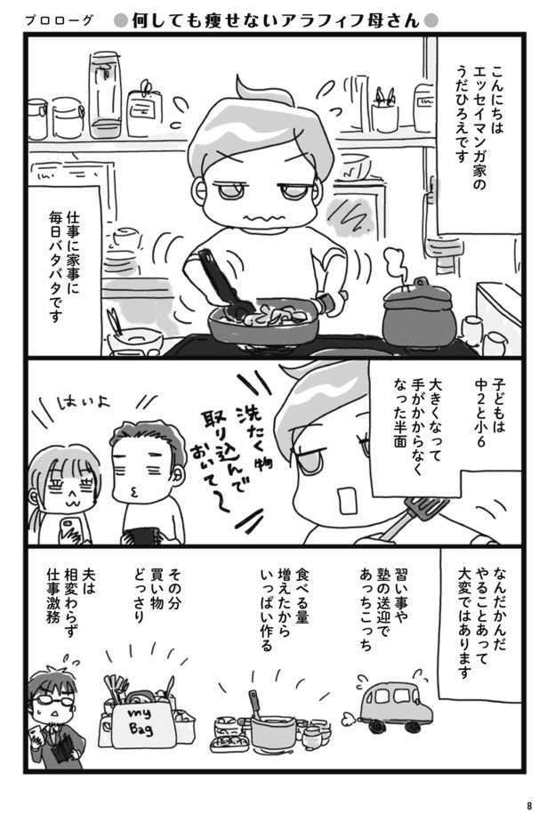 3. アラフィフ母さん兼漫画家の作者。仕事に家事に忙しい彼女にはある悩みが…?/アラフィフ母さんが3か月で7㎏痩せた! 奇跡の仕組みダイエット①