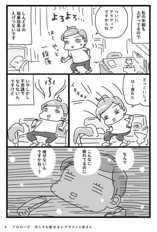 アラフィフ母さん兼漫画家の作者。仕事に家事に忙しい彼女にはある悩みが…?/アラフィフ母さんが3か月で7㎏痩せた! 奇跡の仕組みダイエット①
