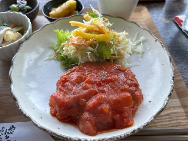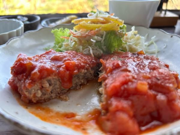ハンバーグはふんわりとしていてトマトソースともとってもマッチしていました!