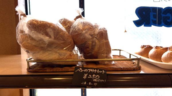 お店では「パンのアウトレット」と名前がつけられたパンの詰め合わせも発見。 数種類のパンが入って、なんと! 税込270円!!