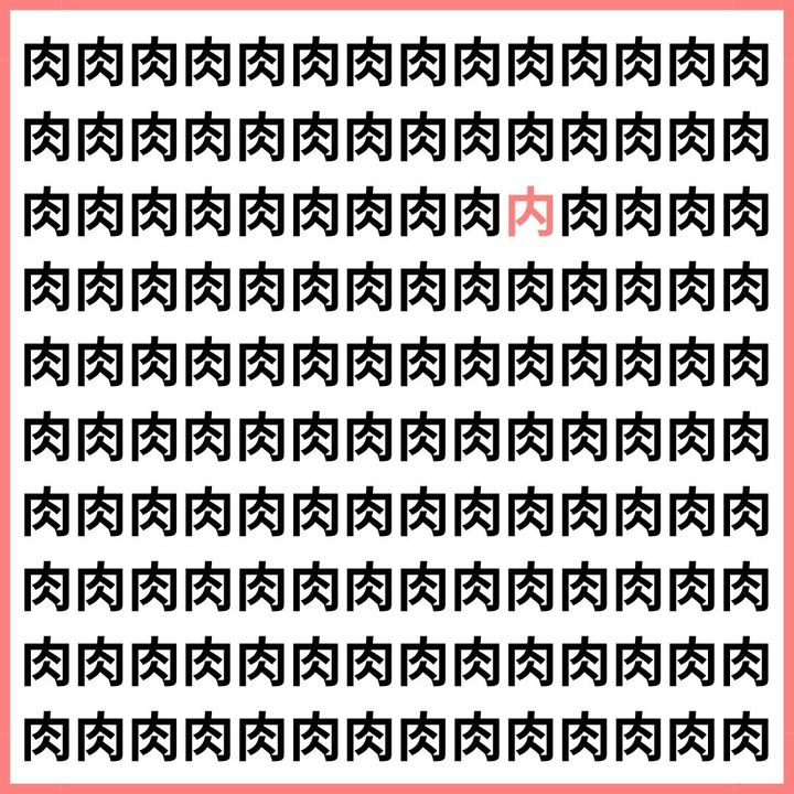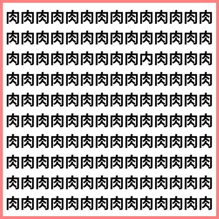 3. “肉”の中に“内”がいる。【1文字だけ違う】漢字間違い探しで脳トレ、何秒で見つかる?