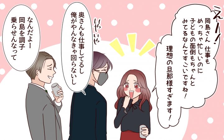 会社では、仕事も忙しいのに子どもの面倒もちゃんとみてる夫として褒めてくれる女の子がいるのに、うちの奥さんは感謝もない。それどころか美優と連絡とったことで不機嫌に。怒るところじゃないでしょ…。俺なんもしてないのに。