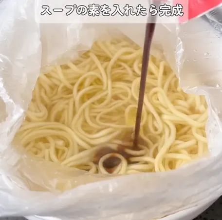 あとは、袋に書いてある表記時間をゆでて、スープの素を入れたら完成です!