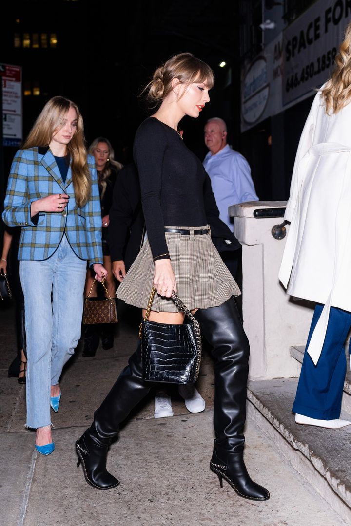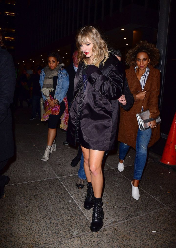 この日も、2人は仲良く手をつなぎながらニューヨークの街に登場。テイラーは全身ルイ・ヴィトンでまとめたオールブラックコーデを披露しました。長い脚を生かしたレースタイツスタイルで、セクシーさを演出!
