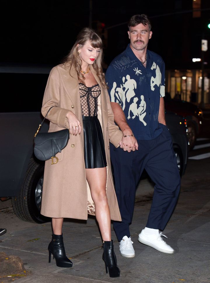 NYの飲食店「Waverly Inn」にて、噂の新恋人のプロアメリカンフットボール選手トラヴィス・ケルシーとデートを楽しんだテイラー。デートともなれば気合いの入った超セクシーな肌見せスタイル。花柄のシースルーカットソーに、ミニ丈スカートを合わせて。