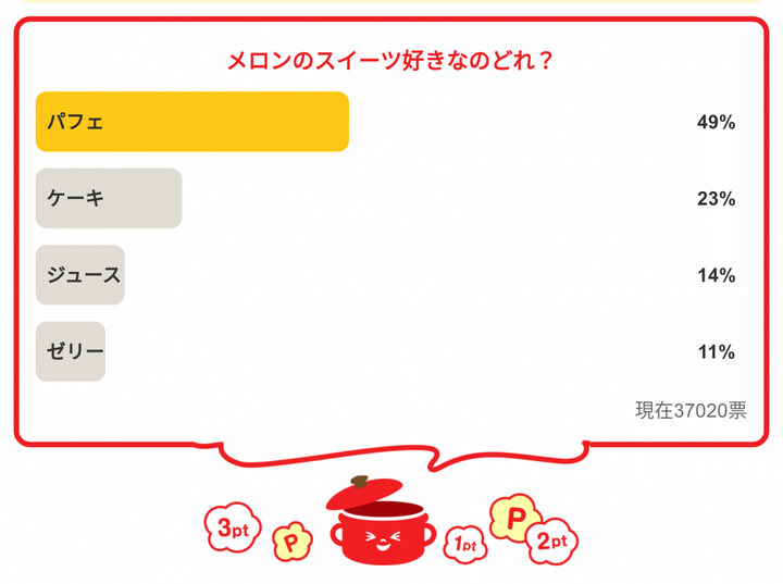 ・「メロンのスイーツ好きなのどれ?」の結果は…