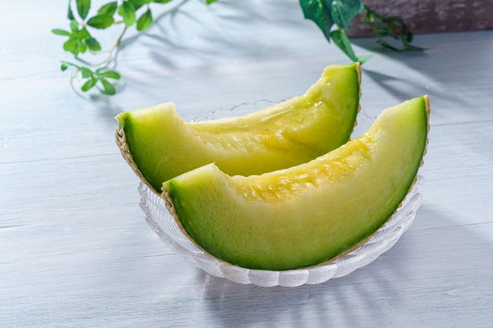 1、メロンは種を取って皮をむき、果肉だけにしてひとくち大に切る。