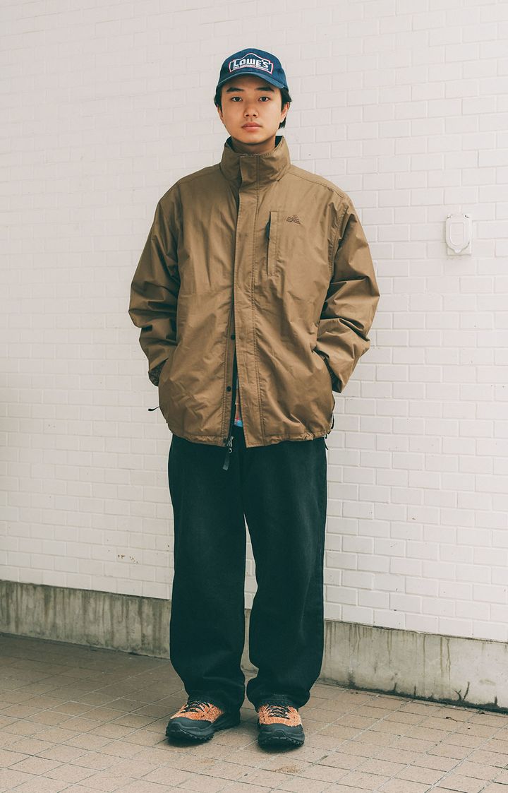 JOB:製鉄業ゆったりサイズのアウターとデニムパンツを着こなし、防寒とリラックスムードを両立したるいさん。ブラウン×ブラックの落ち着いた色合わせに、ロゴ入りの『ロウズ』のハットや『グラミチ×キーン』のコラボスニーカーをプラスして、こだわりが感じられる冬カジュアルな着こなしに。item▼