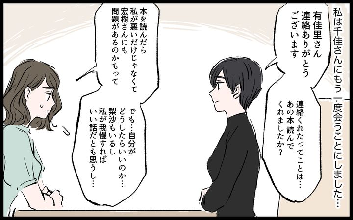 宏樹の妹である千佳から宏樹のモラハラの犠牲になっているのではないかと警告された有佳里。