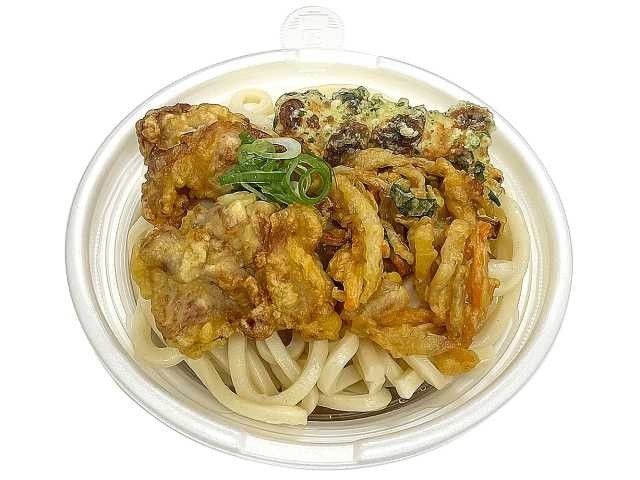 鶏天ちくわ磯辺天野菜バラ天を盛り付けた、おだしの効いたつゆで食べる温かいうどんです。 カロリー:590kcal 【販売地域】埼玉県、千葉県、東京都、神奈川県、近畿