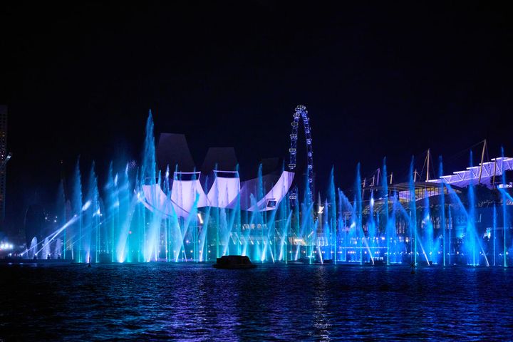 クラーク・キー桟橋からスタートするナイトリバークルーズでは、シンガポールならではの近未来的で煌びやかな夜景を眺めながら、光と水が織りなす壮大なショー「SPECTRA(スペクトラ)」を鑑賞することができます。マーライオンやシンガポール・フライヤー(観覧車)をはじめとした、シンガポールならではのランドマークを背景に、色とりどりのプロジェクションやレーザーなどを駆使した魔法のような光景は、一見の価値あり!