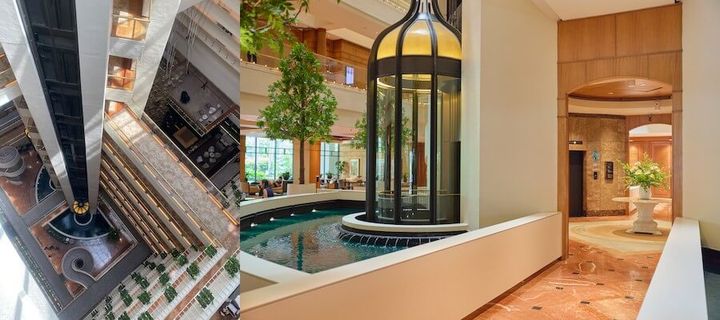 今回の旅で宿泊したのが、「コンラッド・シンガポール・オーチャード」。高級ショッピング街のオーチャード・ロードから1ブロックという好立地に佇む、ヒルトンのラグジュアリーホテルです。館内に一歩足を踏み入れれば、天窓のアトリウムの下に12階のカスケードフロアが広がる、見事な建築空間が広がります。天窓から降り注ぐ自然光に、さらに滝やプール、緑が配置され、館内にいながらも、まるで美しい庭園にいるかのような気分に……。まさに、「ガーデンシティ」と呼ばれるシンガポールを体現したようなデザインに、早速夢心地へと誘われます。