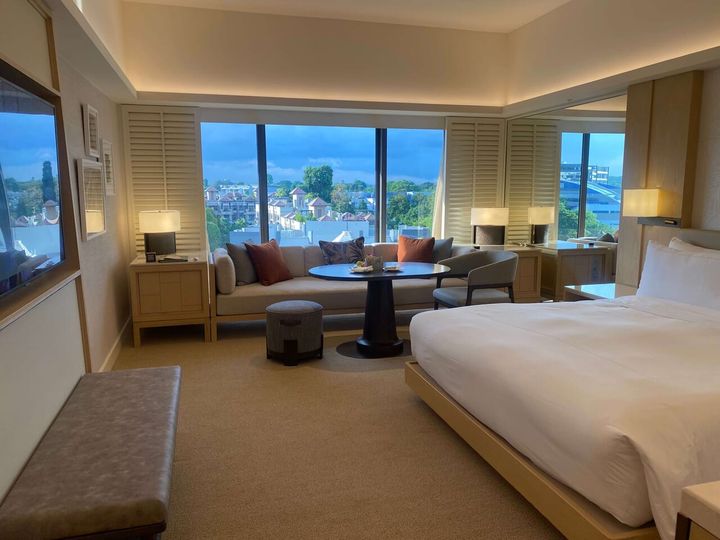 やわらかな中間色でまとめられた客室は、全てレジデンシャルスタイル。窓の向こうには緑豊かなシンガポールの街並みが広がります。また、ゲストに快適な滞在を届けるため、サウンドバスやスリープティー、枕の種類が選べるサービスなど、睡眠へのこだわりも◎。
