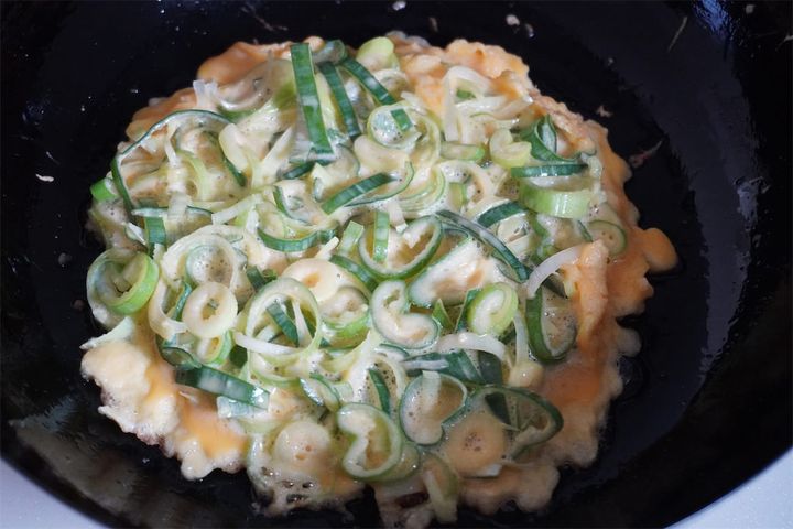 卵とチーズでコク旨♡「ピザ風ネギ焼き」