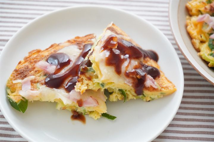 そのまま食べてもいいですし、ソースやケチャップの味変も楽しい、「ピザ風ネギ焼き」。