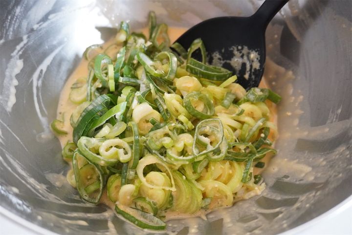 ダマがなくなるまで混ぜたら、長ねぎを入れて混ぜましょう。
