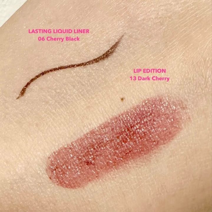 ラスティングリキッドライナー a 06 チェリーブラック ¥1,760、リップエディション(ティントルージュ)13 ダークチェリー ¥1,650
