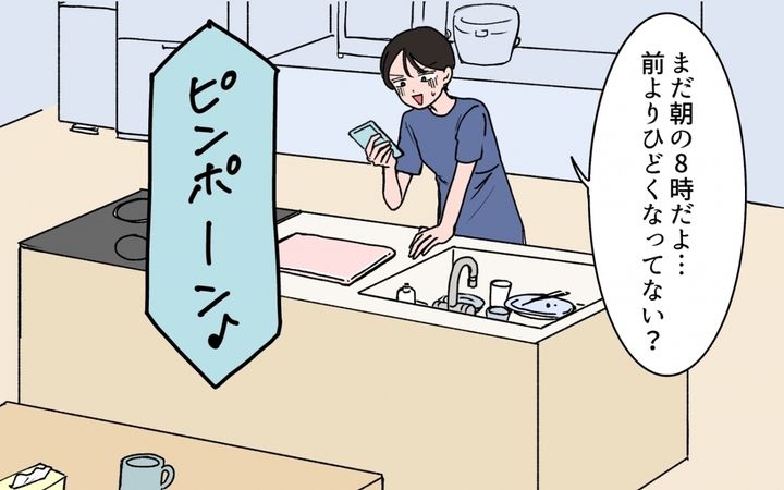 毎日、毎日、義母からのメッセージに迷惑しているミツキ。夫は気軽に「無視しろ」と言いますが、嫁の立場では出来ずにいました。ミツキももうすぐ職場復帰となるため、もう少しだけ…そう考えて我慢してきました。そんな矢先、朝早くから鳴り響く通知音に…。