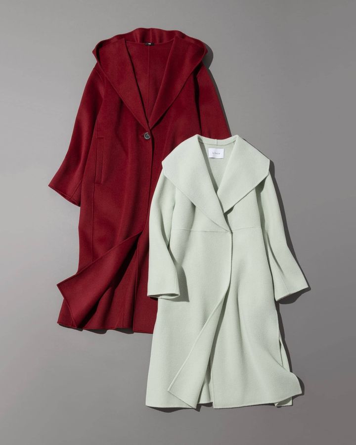 〈右〉ミントコート¥44,000(ラ トータリテ/ラ トータリテ 有楽町マルイ)〈左〉赤コート¥29,000(PLST)