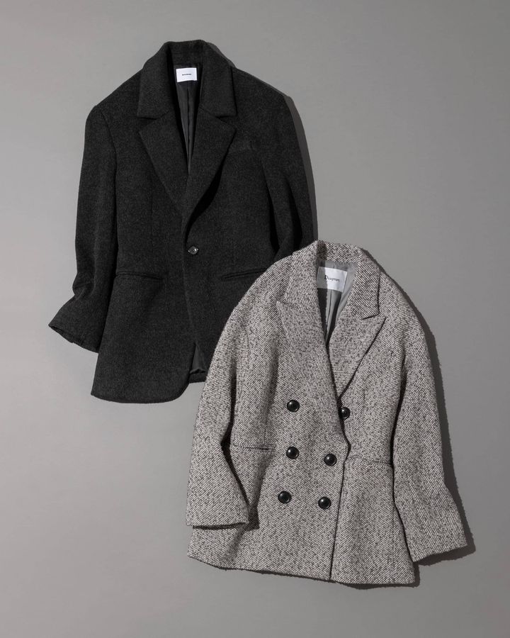 〈右〉ツイードジャコット¥63,800(ダイアグラム/Diagram 表参道ヒルズ店) 〈左〉黒ジャコット¥35,200(MIESROHE/MIESROHE ルミネ新宿店1店)