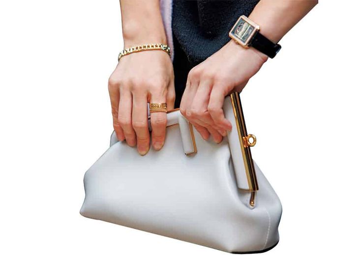BAG / FENDI、CARDIGAN / DRAWER、TOPS / Max Mara、SKIRT / UNITED ARROWS、SHOES / Roger Vivier、EARRINGS / FENDI、BRACELET / Tiffany & Co.