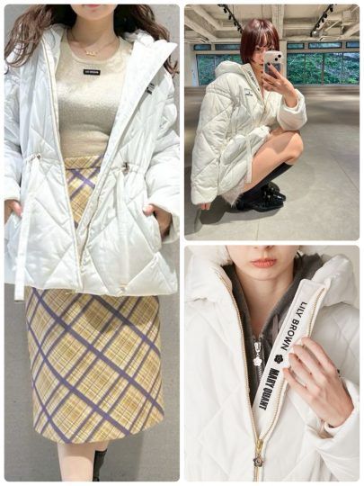 胸下で切り替えを施してスタイルアップ効果を発揮。クラシカルな印象を与えるキルティング素材もポイントです。前立てには両ブランドのブランドネームを刻み、さりげないアクセントに。袖口に仕込んだリブが冷たい風の侵入を防いでくれます♡高機能中綿を使用しているから、軽やかな見た目に反してとびきりあったか。