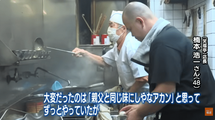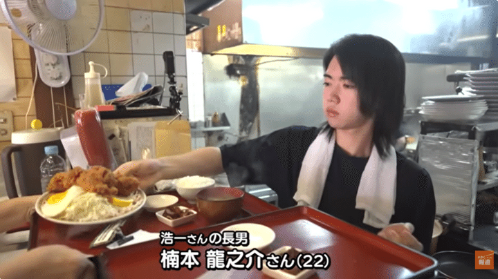 お店を切り盛りするのは、創業者の楠本敏男さん(81)と貞子さん(71)夫婦。そして、敏男から店を受け継いで店長を務める長男の浩一(48)さん、その長男で孫の龍之介さん(22)の4人。親子三代が厨房で忙しく働いています。