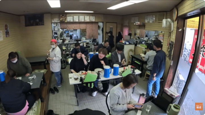 午前11時半、オープン時間になると、店内はあっという間に満席に。初来店という男性がオーダーしたのは、もちろんから揚げ定食。「この量はちょっと予想外」とボリュームに驚きながらも、「鶏がめちゃくちゃ柔らかい。衣もサクサクしてます」とそのおいしさに夢中です。