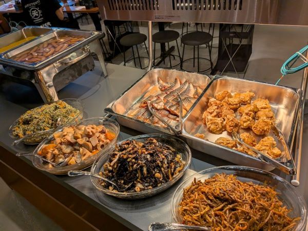 お野菜たっぷりのお惣菜や明太子、パンケーキなどメニューの種類も豊富ですよ。