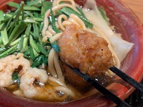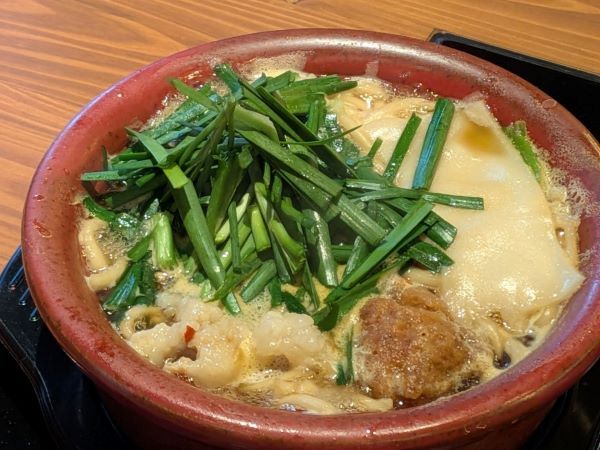 そして、注目してほしいのが、もつ鍋のスープをジュワっとすった「博多もつたこ焼き」。カリッとした食感も残りつつ、味がしみしみのトロトロの生地は、やみつきになる味わいです。たこともつ肉2種類が入っていて、食べ応えも十分ですよ。鉄を含ませた特注の丼ぶりを使用しているので、最後まで熱々を楽しむことができました。 スライスの餅、キャベツ、にらなどと、具沢山で1杯1078円とはコスパ最高の、1品でもつ鍋と〆の両方が完結するハイブリッドもつ鍋ですよ。7分で提供、7分で食べられる(猫舌でなければ♪)という、”もつ鍋のファストフード”との出会いを楽しんでみてはいかがでしょうか。