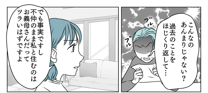 自分の過去のやらかしをバラされた義母はまるで被害者かのように振る舞っていますが、母に「人の罪悪感に付け込もうとしてるだけですよね」と言われ、義母はぐうの音もでない様子です。