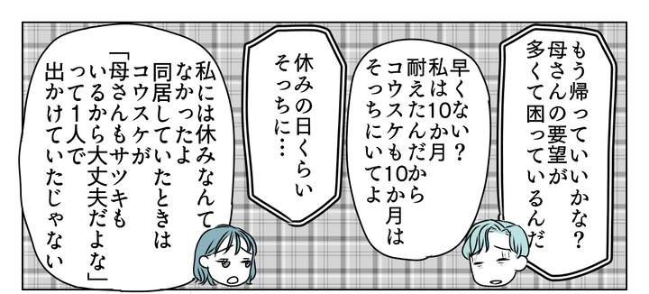 夫には義母との同居生活の大変さをしっかり心と身体に刻んでもらっています。