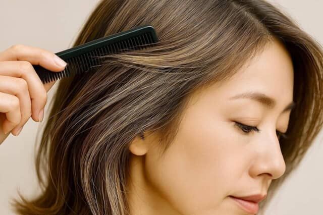 せっかく白髪ぼかしがきれいに仕上がっても、乾燥で毛先がパサつくとツヤ感が半減してしまいます。冬は、オイルやセラムなどの“軽めの保湿スタイリング剤”を毛先になじませるのが理想的。手ぐしで毛先を整えるだけで、束感が生まれ、白髪ぼかしのニュアンスが自然に際立ちます。
