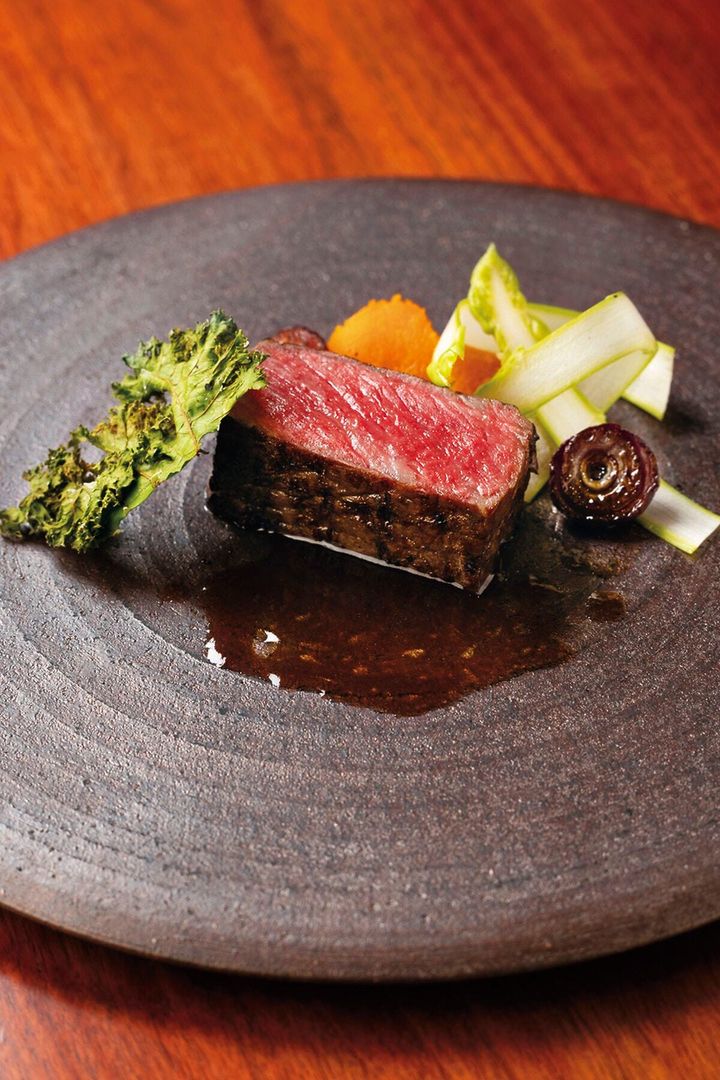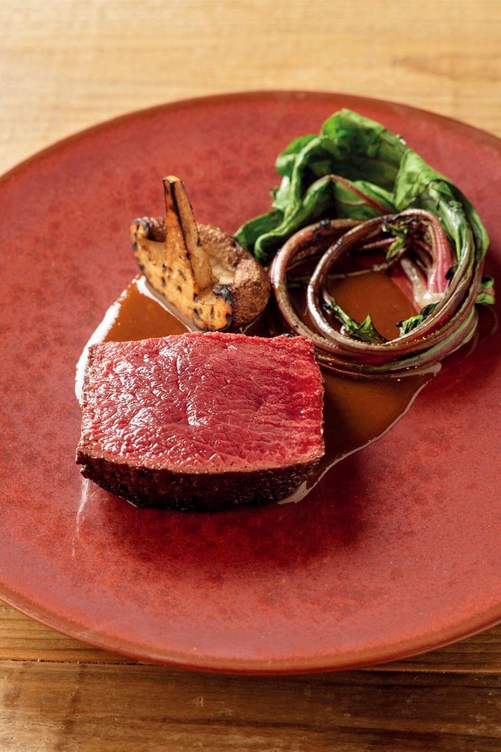 最近の薪火料理店のなかでもお気に入りの一軒が「jiü」です。「鹿肉のロースト」は、ガリッと焼いた外側は香ばしく、中はベルベットのようにしっとりと柔らか。鹿の野生的な香りと薪の香りが口の中で重なり、森の情景が浮かびます。単に薪火で焼いたとは思えない繊細な味わいに驚くと「薪火とコンベクションオーブンのいい部分を使って焼いています」とシェフの大和田龍之介さん。肉本来の味を引き出し、原始の炎と最先端の技術で高みに引き上げた一皿は、もう一度食べたくなりました。