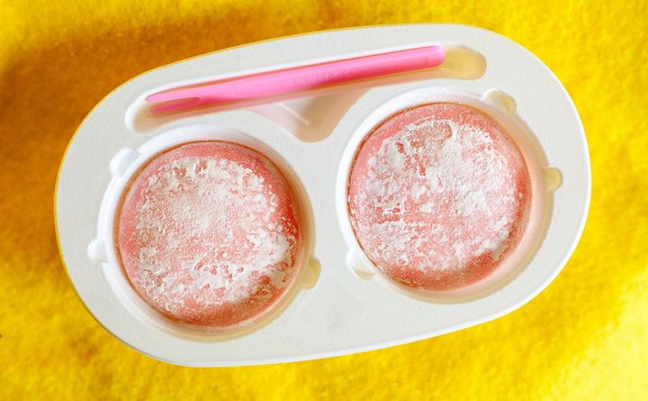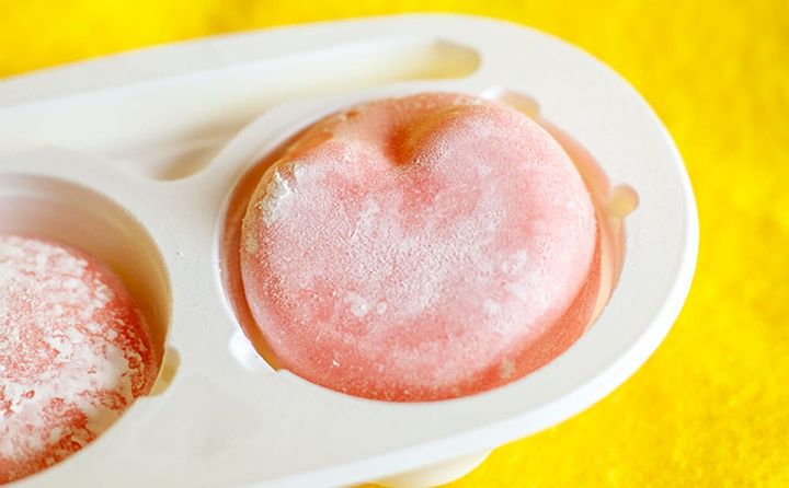 ピンク色だけど、ハートじゃない……そう思った方も多いはず。一見いつもの雪見だいふくですが、ハートは裏に隠れているんです。裏返してみると、ちゃんとハートが見えました。かわいい!