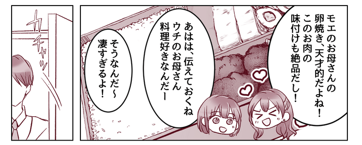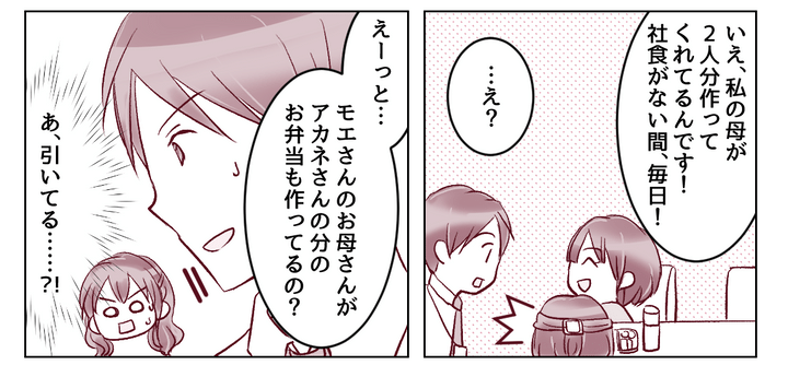 モエにしてみたらお母さんの美味しいお弁当は自慢なのでしょう。ヨシザワさんにも得意げな笑顔で「お母さんが作ってくれている」と伝えていました。