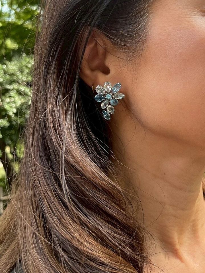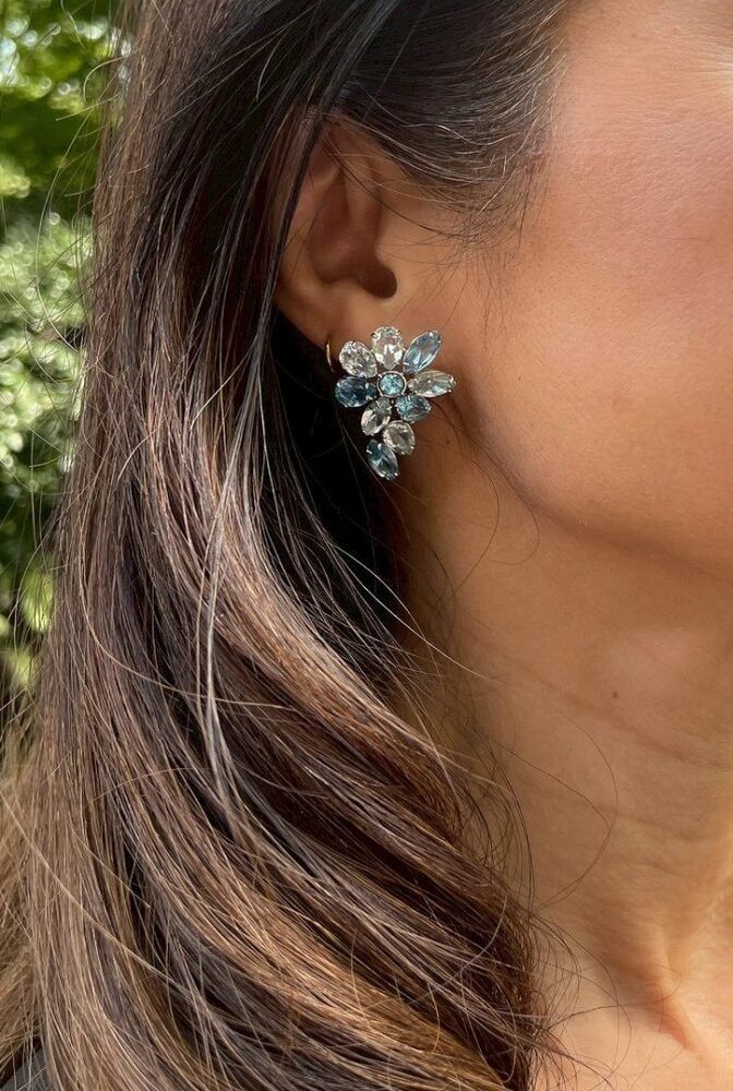 「スワロフスキーのピアスはブルーのカラーをチョイス。ネイリストを25年やってきて、仕事柄裏方で黒を着ることばかりだったので、最近黒を卒業したいなという思いがあり、小物に色を取り入れるところから始めました。華やかでカラフルなものを集め始めたところです」