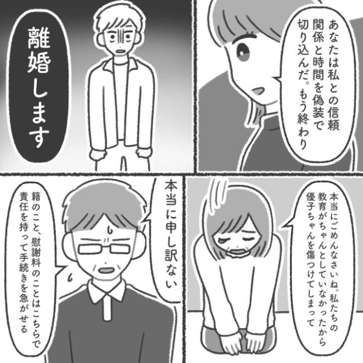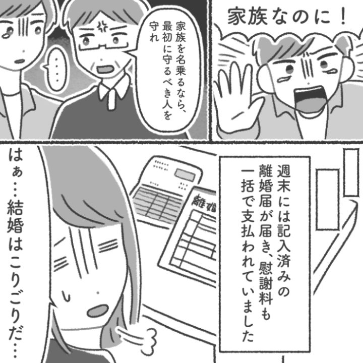 パーソナルジムに通うと言って、実は不倫をしていた正弘。もう結婚はしばらくいいやと思った主人公でした。