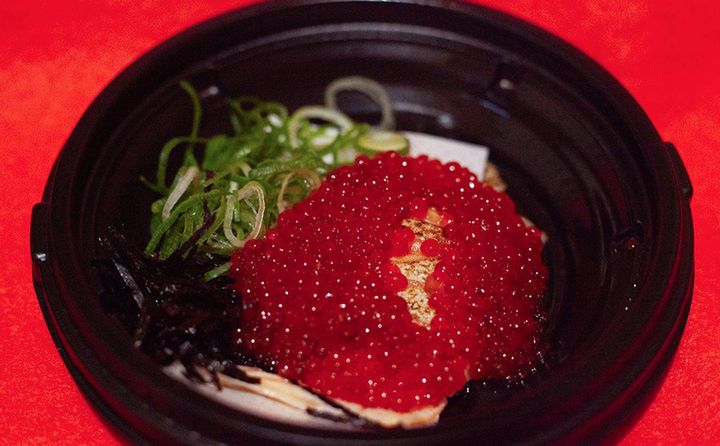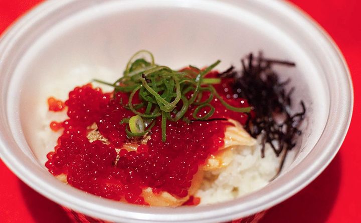 いくらに隠れてしまっていますが、下には炙りサーモンがあります。正確にカウントしたわけではないけれど、4~5切くらいはあったはず。そのほかはねぎと刻み海苔のみです。