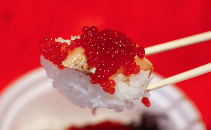 サーモンの香ばしさと自然な甘み、いくらのほのかな塩味の相性がばっちりで、間違いなしの組み合わせですね。いくらのぷちぷち食感も、楽しいです! おそらく多くの方が気にしているであろう生臭さも一切気にならず、大満足できました。あえてマイナスポイントを見つけるとしたら、いくらの粒が小さいことくらい?