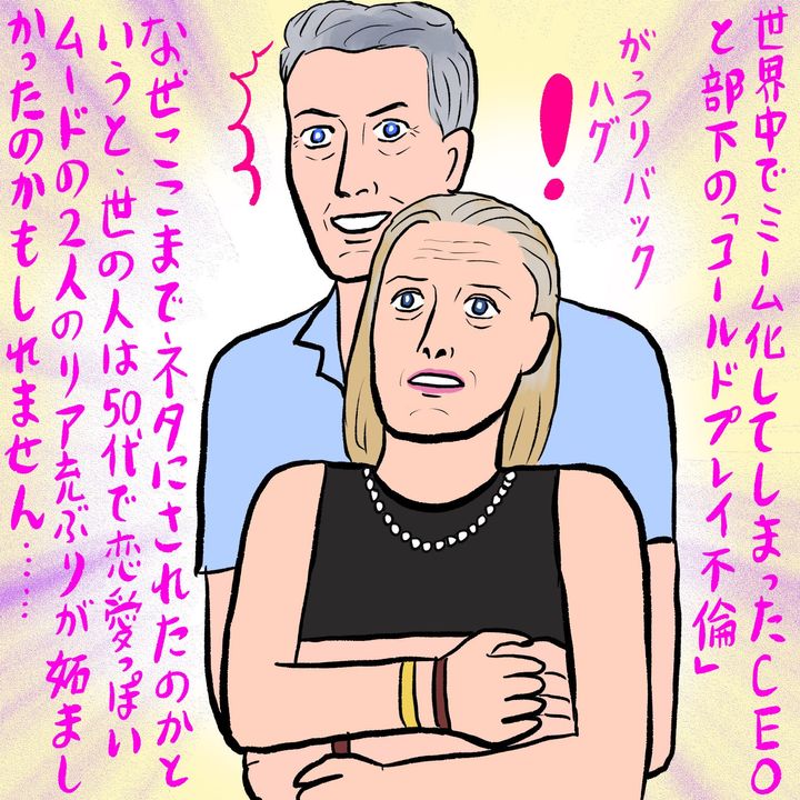 その後、なんとクリスティン・キャボット氏の夫アンドリュー・キャボット氏が、別の女性と同じコンサート会場にいたことが判明。大画面を見て夫の方も焦ったに違いありません。それにしても、同じコンサート会場に集合しすぎです。皆さんコールドプレイ世代だったのでしょうか。コールドプレイの恋愛の楽曲を聴いて、恋愛モードにスイッチが入っていたのかもしれません。