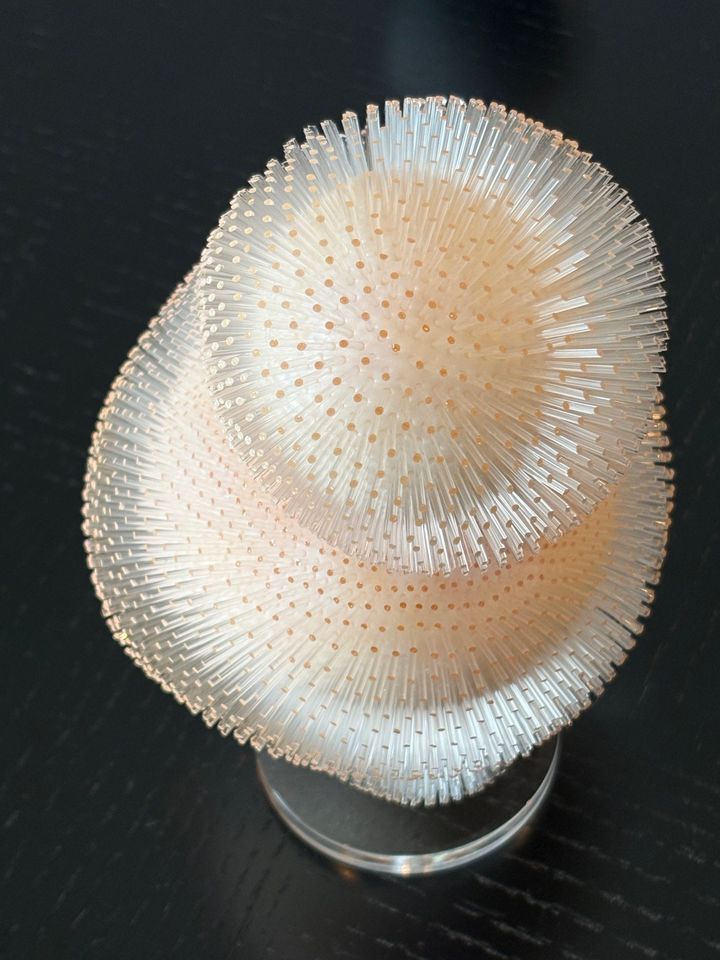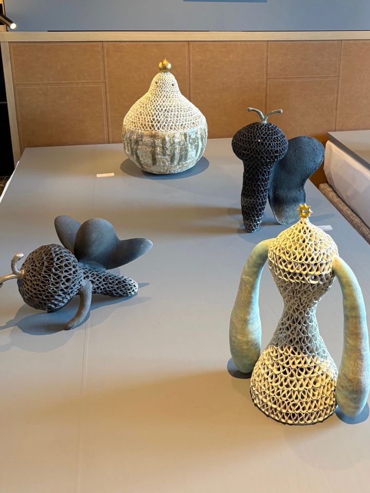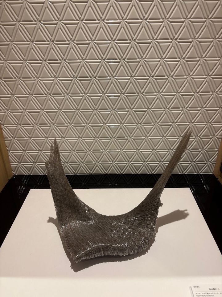先ほどはガラス作品をいくつかピックアップしましたが、個人的に気になった作品もご紹介させてください。ここを訪れる際、私は工芸とアートの境界線についてモヤモヤと考えていたけれども、こうして巡っているうちに、理性的に識別する必要はなく、素材や技術を用いながらも、ハッとするような新しさを創造する、そんな作品を楽しめばいいのかな、とかなり寛容になっている自分に気づきました。