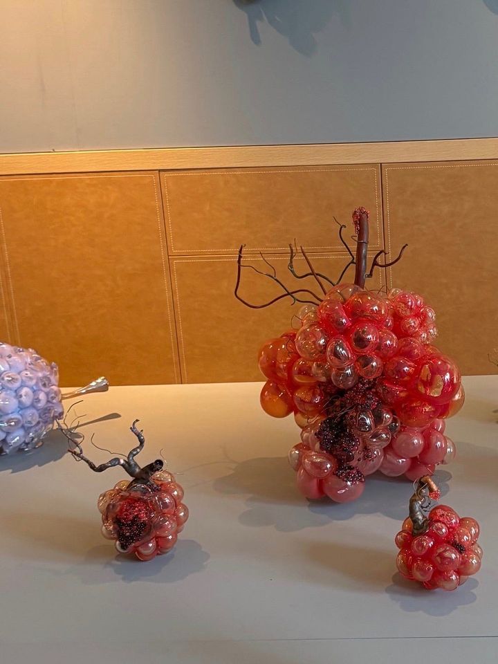 寺澤季恵作「Heart Beat」。ガラスを生命と捉えた、美しくもグロテスクな作品は、富山市ガラス美術館の特別展でもひときわインパクトがあった。(Art +Craft Gallery蚕室) 撮影=田中敦子