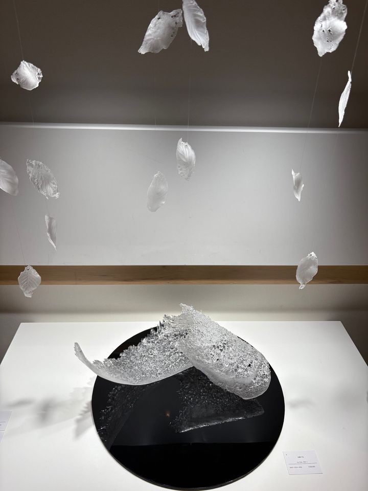 実は今回、金沢に入る前、富山に立ち寄りました。富山市ガラス美術館で開催されている「開館10周年記念 めぐりあう今を映す 日本の現代ガラス 1975-2025」を見るためです。ガラス作家を取材していると、アメリカのスタジオグラス運動というワードにいきあたります。ガラス制作が、長らくデザインする人と製作する人に分かれている工房制から抜け出し、個人作家が登場。彼らの制作活動をスタジオグラスと呼び、その影響を受けた日本でも1970年代に美大教育が始まり、ガラス作家が輩出されていきます。展覧会は草創期から発展期へと6章に分かれていましたが、第5章と第6章の2000年代以降のガラス工芸、中でも若手のガラス作家の印象的な作品を、アートフェアに参加しているいくつかのギャラリーで目撃しました。前日に見たことを差し引いても、印象的な作品が多く、そうした作品を含め、新しい技術や感性の作品をいくつかピックアップしました。