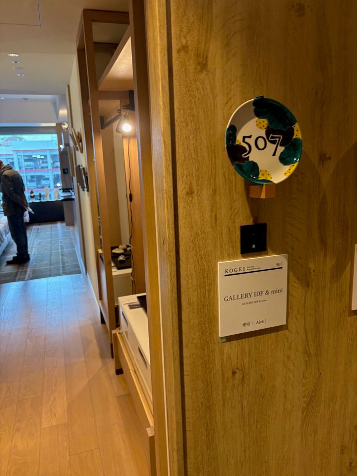 客室が参加ギャラリーのブースに。部屋番号のプレートは九谷焼。 撮影=田中敦子