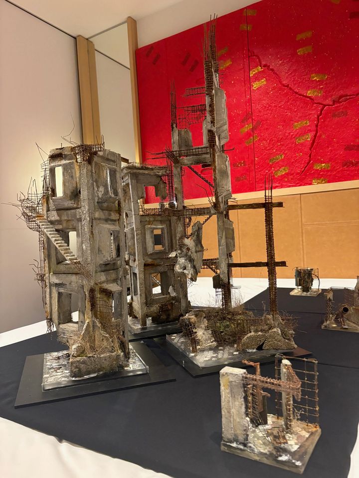 水野シゲユキ作「楽園計画」。建物の構造が好きだという作家の、荒涼たる廃墟の不思議な明るさに見入ってしまった。(GALLERY BORDER) 撮影=田中敦子
